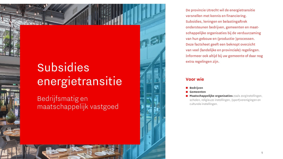 Factsheet subsidies energietransitie voor bedrijfsmatig en maatschappelijk vastgoed.